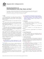 1.1 This specification covers a group of general requirements that, unless otherwise specified in the purchase order or in an individual specification, shall apply to rolled nickel and nickel alloy plate, sheet, and strip, under each of the following specifications issued by ASTM: Specifications B127, B162, B168, B333, B409, B424, B434, B435, B443, B463, B536, B575, B582, B599, B620, B625, B670, B688, B709, B718, B755, B814, B818, B872. 1.2 In case of any conflicting requirements, the requirements of the purchase order, the individual material specification, and this general specification shall prevail in the sequence named. 1.3 The values stated in inch-pound units are to be regarded as standard. The values given in parentheses are mathematical conversions to SI units that are provided for information only and are not considered standard. 1.4 This standard does not purport to address all of the safety concerns, if any, associated with its use. It is the responsibility of the user of this standard to become familiar with all hazards including those identified in the appropriate Material Safety Data Sheet (MSDS) for this product/material as provided by the manufacturer, to establish appropriate safety and health practices, and determine the applicability of regulatory limitations prior to use. |